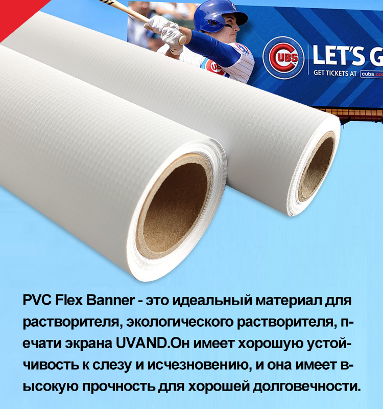 Покрытое ПВХ Flex - это широко используемый баннер. Он имеет хорошую прочность на растяжение, сопротивление пилинга и погодность погодности, используемую для широкоформатной рекламы. Он печатается с растворителем, экологическими и